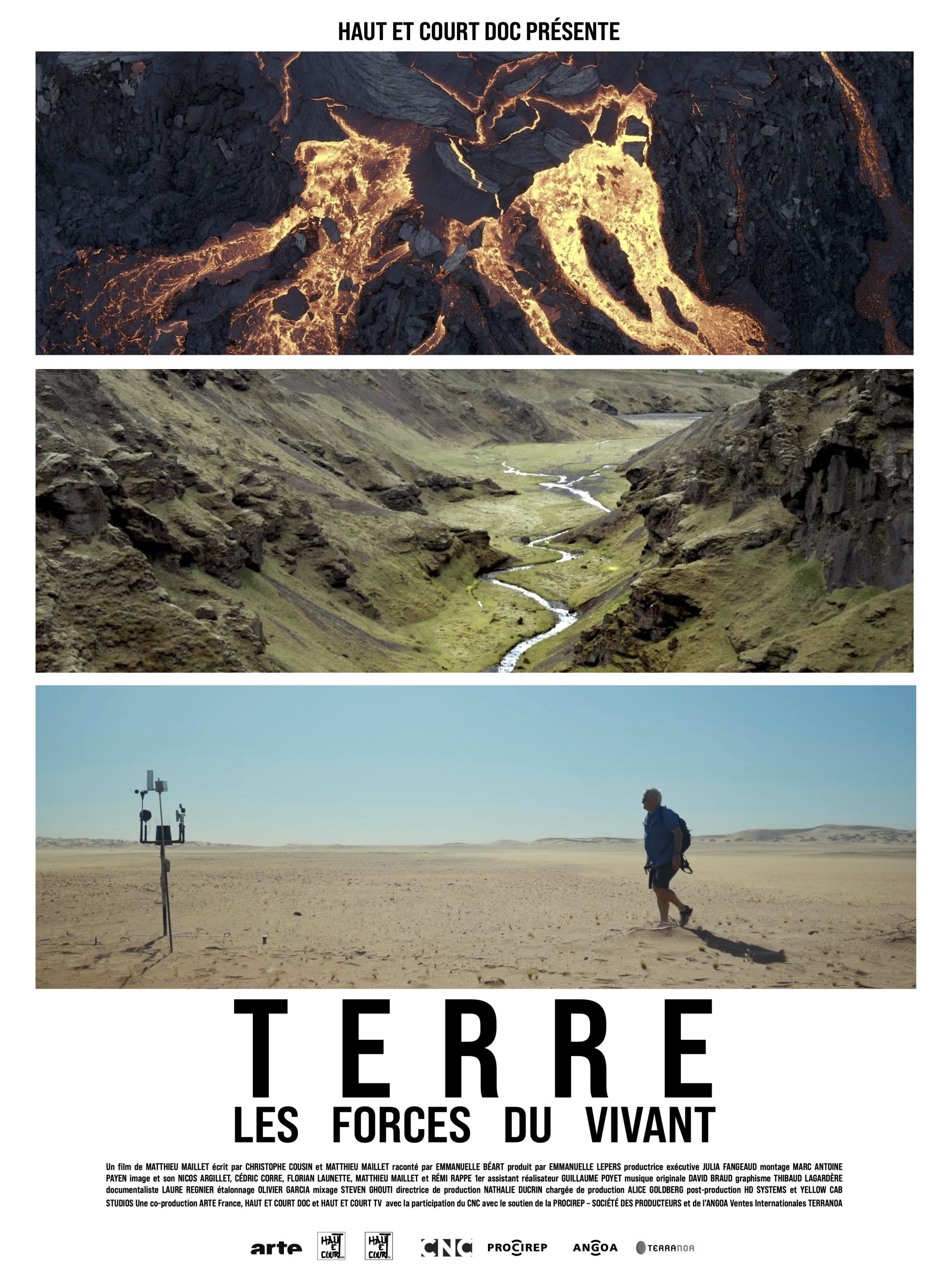 Racontée par Emmanuelle Béart, TERRE, LES FORCES DU VIVANT est une odyssée fascinante qui nous révèle une histoire oubliée : celle de la roche, matrice du vivant. De la naissance de la planète jusqu’à l’Anthropocène, ce documentaire spectaculaire dévoile comment la matière minérale a engendré la vie, sculpté les paysages, nourri les civilisations. Porté par de sublimes images, tournées à travers le monde et par les voix de scientifiques de renommée internationale, le film tisse un récit sensible et profond. Une plongée vertigineuse dans le temps, qui nous raconte l’histoire de la Terre, dont nous ne sommes qu’un fragment.
